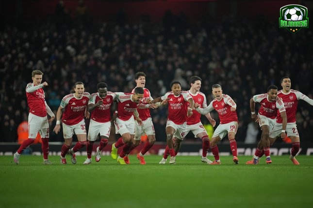 BOLABARENG – Arsenal memastikan langkah ke babak semifinal Carabao Cup 2025/2026 usai menyingkirkan Crystal Palace lewat drama adu penalti yang menegangkan di Emirates Stadium, Rabu (24/12/2025) dini hari WIB.